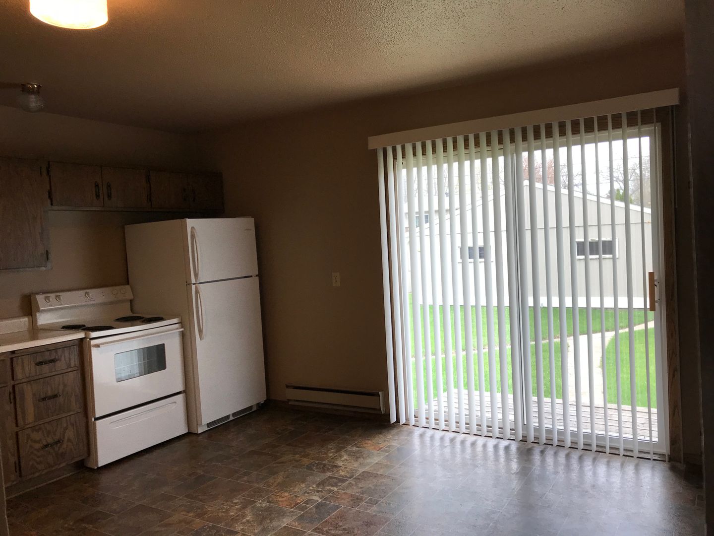 Walk out patio doors from the kitchen.